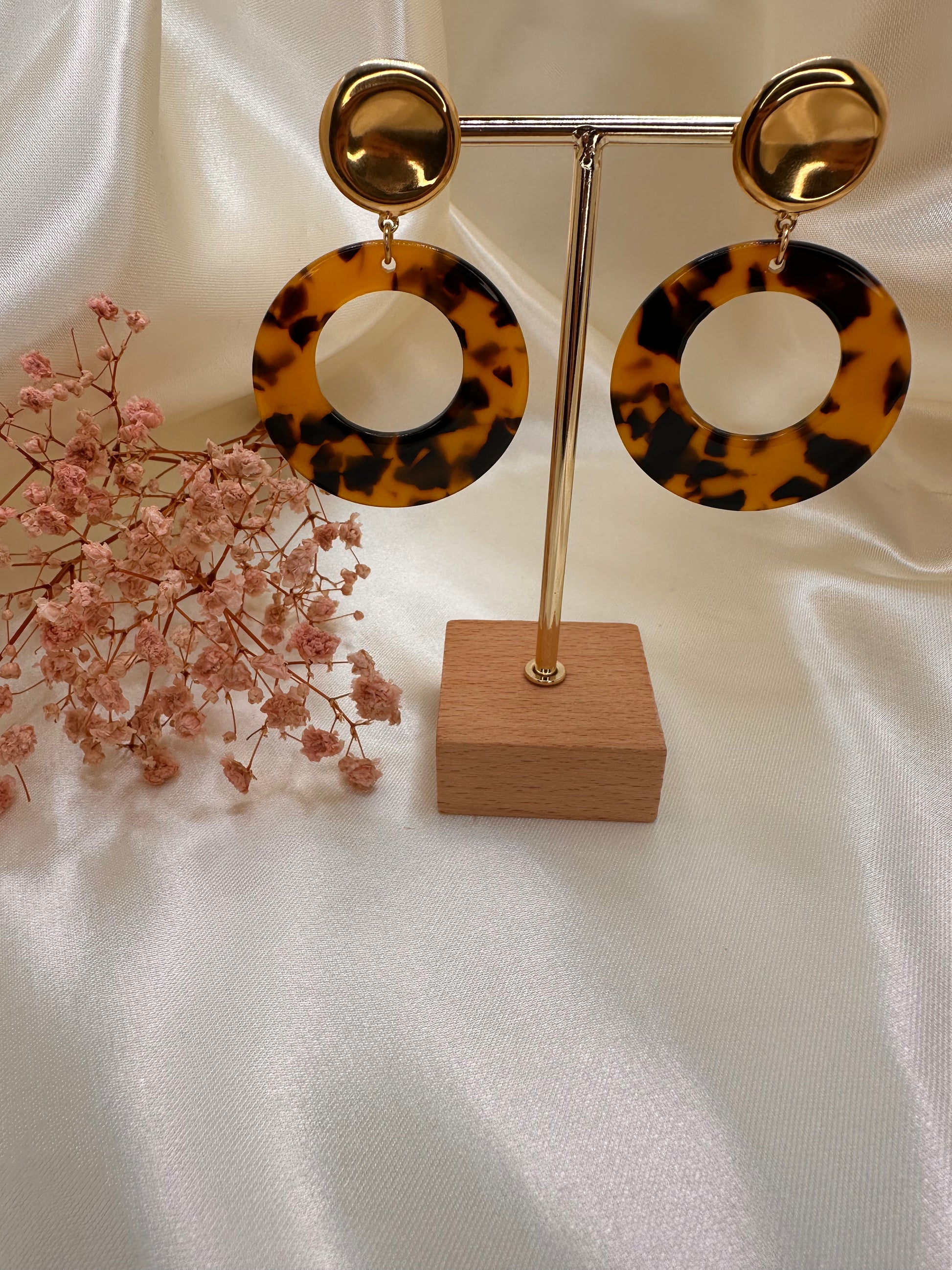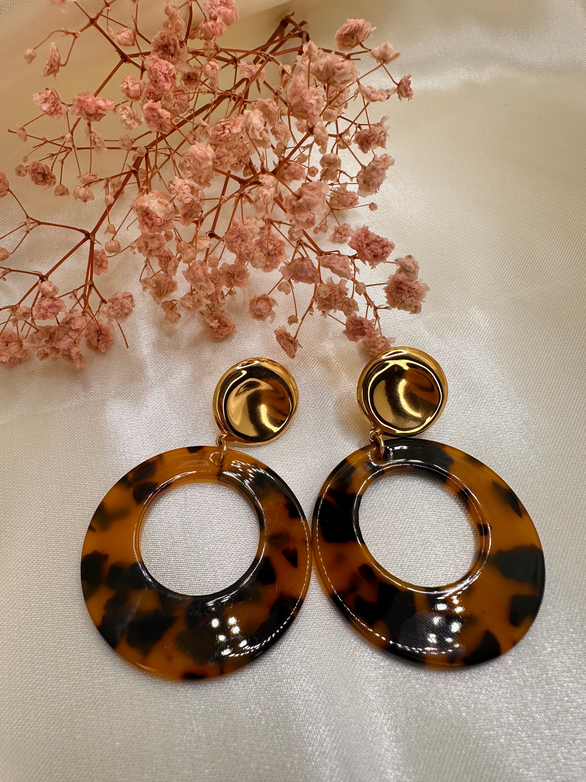 Boucles d’oreilles en acier, inoxydable, couleur or et léopard
