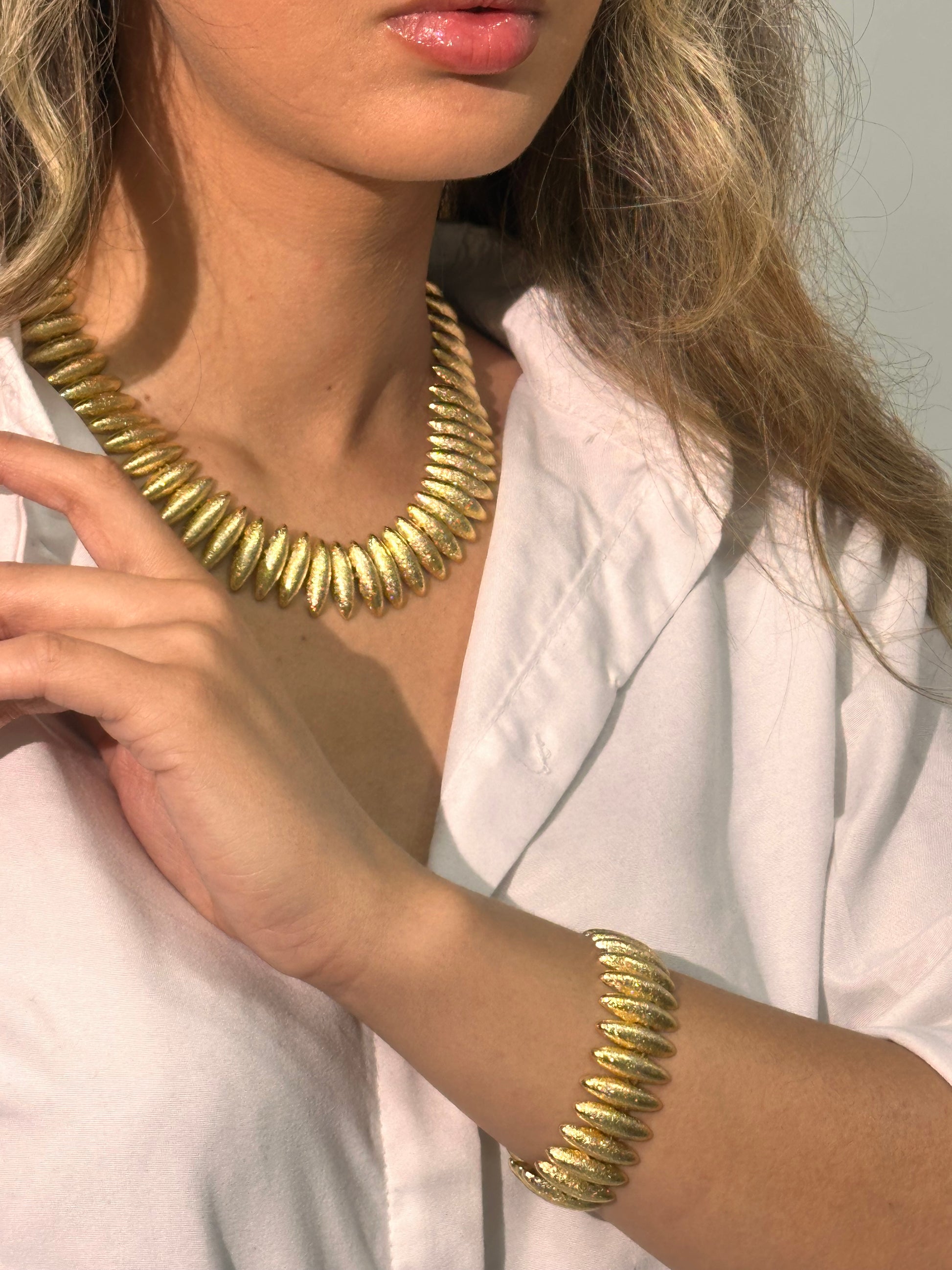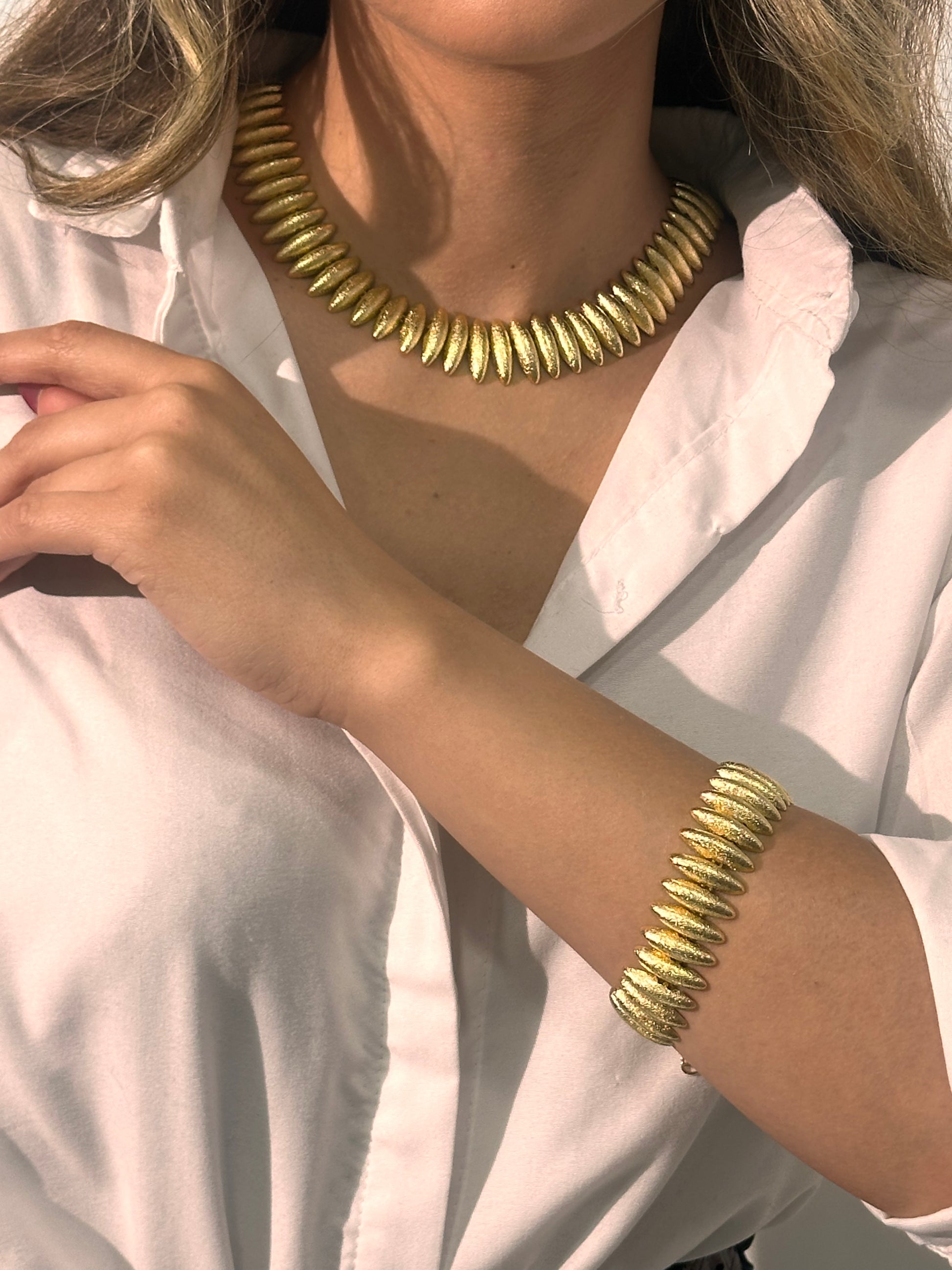 Ensemble, collier et bracelet en plaqué or