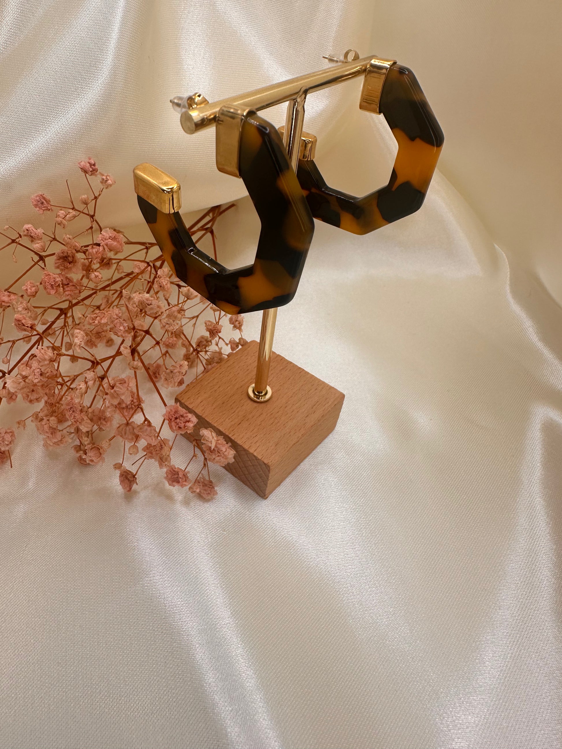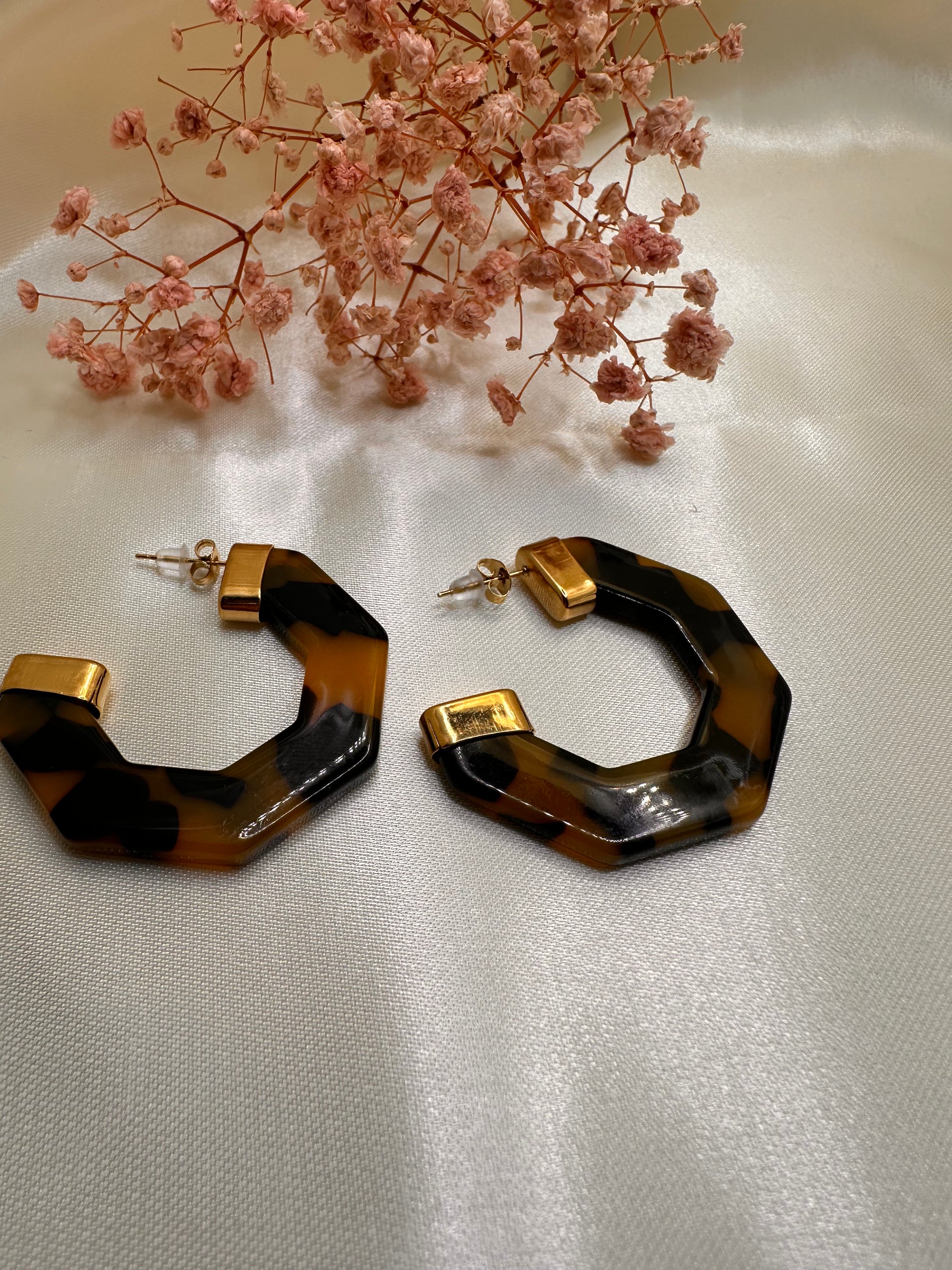 Boucles d’oreilles en acier, inoxydable, couleur dorée et léopard