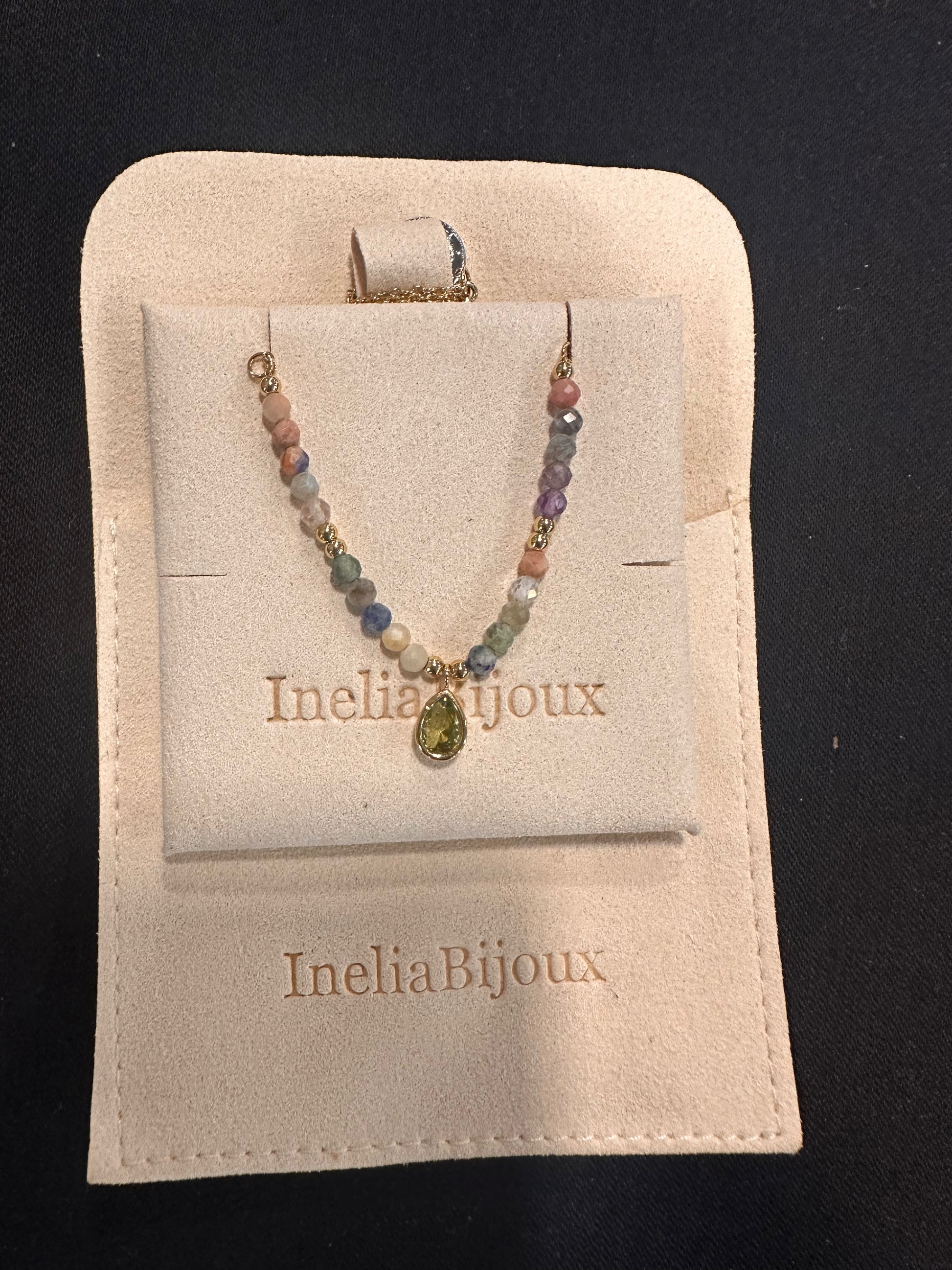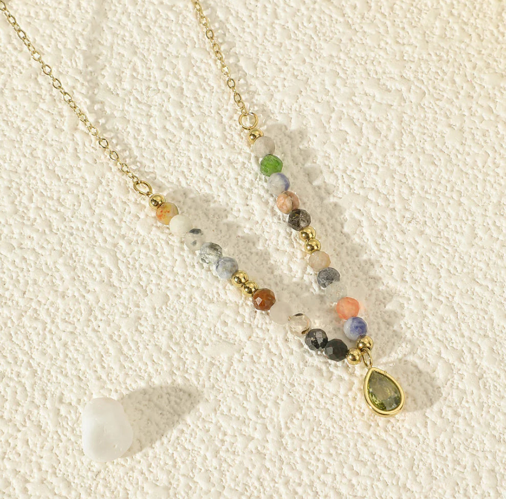 Collier Chaîne Dorée Perles Multicolores Goutte Strass. Tous nos produits sont fabriqués en acier inoxydable, un matériel qui résiste à l'eau et au temps.