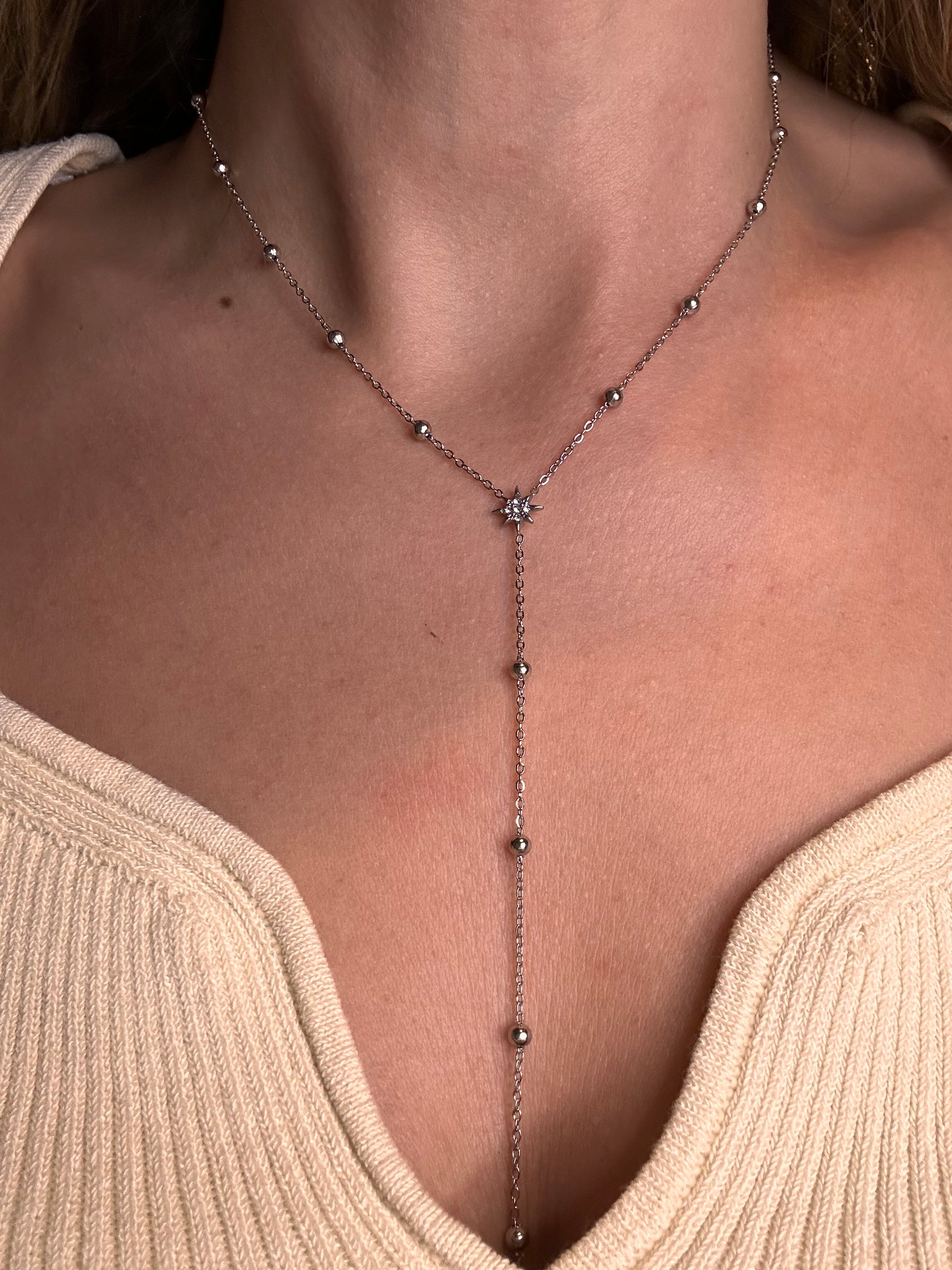 Collier en acier inoxydable, couleur Argent -collier Y-
